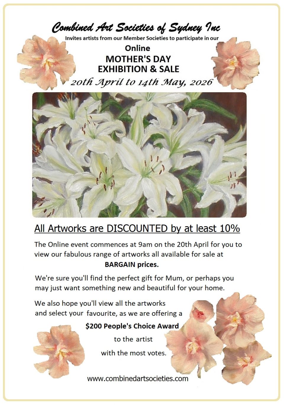 Mar 25 2026 Online Mothers Day Exhibition and SaleVisit WebsiteView More Details Leave a ReplyYou must be logged in to post a comment.