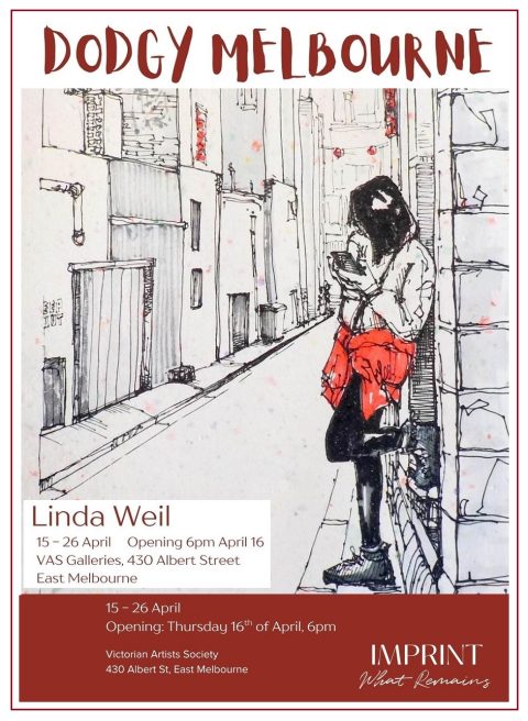 "Dodgy Melbourne" - a new solo exhibition by Linda Weil will be at Victorian Artist Society's Gallery in East Melbourne from the 15th to 26th April, 2026.