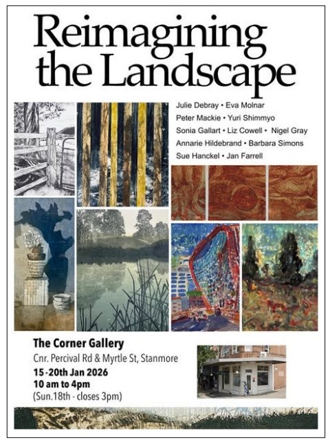 The first event for 2026 at the Corner Gallery in Stanmore starts on the 15th January.