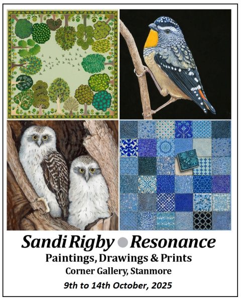 Sandi's new exhibition titled ‘Resonance’ commences on Thursday, 9th October, with an opening function on Saturday, 11th October at 3pm.
